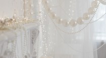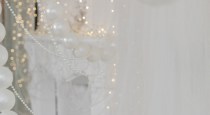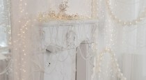 - Белая локация с камином и жемчужным оформлением