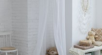 - белый лофт с декором и зона с детским шатром