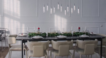 - Три зоны для съемки и отдыха: светлый мягкий диван, два кресла с кофейным столиком и торшером, стильный обеденный стол, сервированный на 8 персон, а также дополнительные стулья для комфортного размещения до 10 человек.