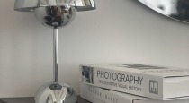 - Мебель и реквизит: антикварный комод, трюмо, витрина, небольшой сервировочный стол на 2 персоны, ретро стулья Armin Wirth, винтажный стеклянный сервировочный столик, черное кожаное кресло Баухаус, черный металлический торшер, замшевая софа цвета ириски, черная тумба с настольной лампой Баухаус, ростовое зеркало 180×96 см, рейл для одежды.