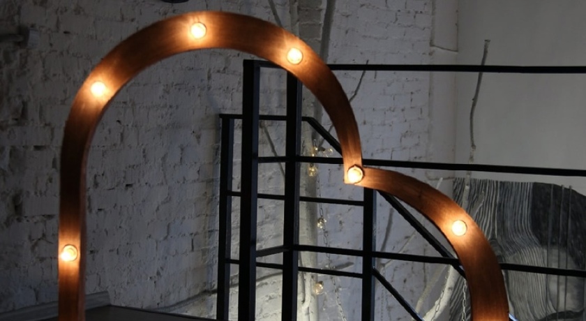 - Локация "Лофт": стильная кирпичная стена, черный и белый бумажный фон, декоративные растения, барный стул.