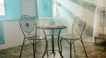 В пространстве — зона с металлической кроватью и балдахином, винтажные детали и светлая зона патио с кованой мебелью в атмосфере уличного кафе. Несколько интерьерных сценариев в одном зале позволяют проводить как камерные портретные съёмки, так и полноценные lifestyle-проекты.