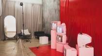 Это универсальное пространство для создания контента. В зале расположено оборудование для записи разговорных видео: рилсов и подкастов. А так же разнообразные фотозоны в минималистичном стиле для фото и видео контента. Подвижные шторы и интерьер позволяют добиваться самых красивых кадров