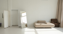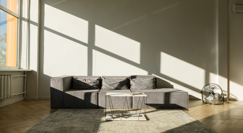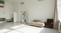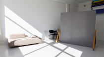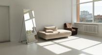 Светлые стены, панорамное окно и пол в оттенках светлого дуба, уложенный «ёлочкой», создают идеальную атмосферу для вашего творчества.