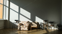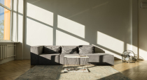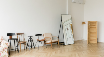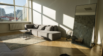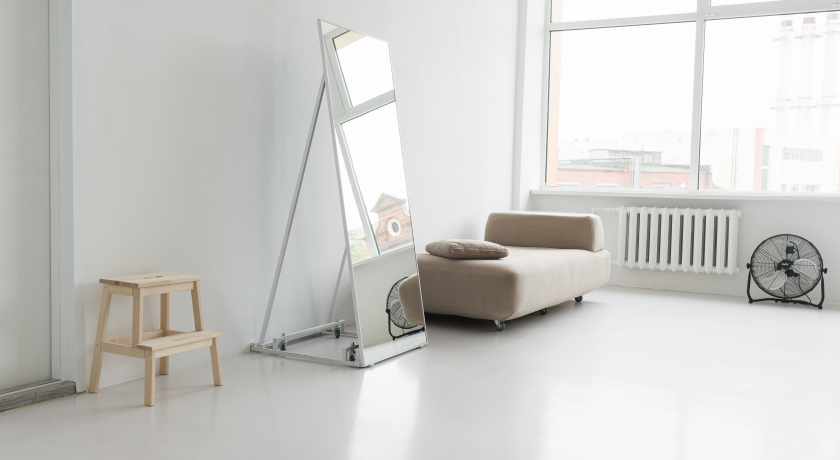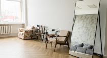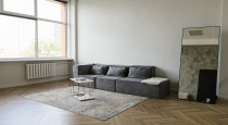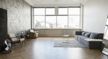Светлые стены, панорамное окно и пол в оттенках светлого дуба, уложенный «ёлочкой», создают идеальную атмосферу для вашего творчества.