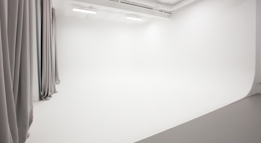 * Циклорама: Прямая (6×4 м) с подогреваемым полом. Идеально для длительных съемок одежды и работы моделей босиком.