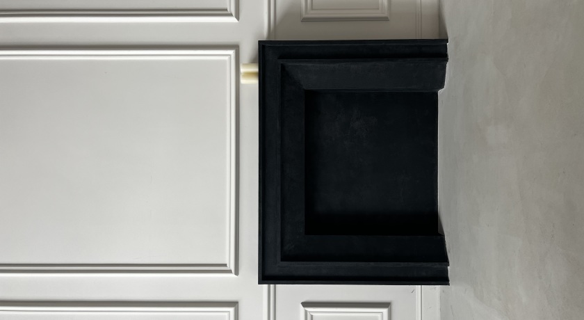 Залы Спальня и Неоклассика объединены для создание атмосферы квартиры со страниц журнала Vogue. Идеально подходит для создания элегантных и романтических фотографий. Основными элементами дизайна является красивая арка, черная и розовая стена с лепниной как из Pinterest.