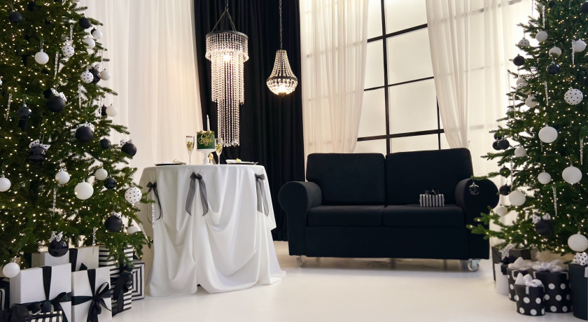 Интерьерные локации в студии представлены в минималистичном стиле, в монохромной цветовой гамме, что позволяет снять любой контент: