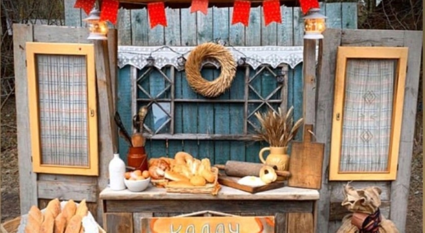 Может быть декорирована сеном, домоткаными половиками и т.п.