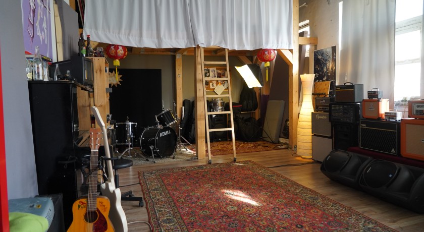 Так же дополнительно есть музыкальная студия с полным интерьером и атмосферой музыкальной студии
