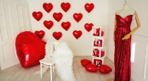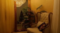 Зал включает в себя 4 основных зоны: белый угол,украшенный ко дню Святого Валентина, напротив у окна белый диванчик, в углу зона с большой люстрой, креслом и зеркалом