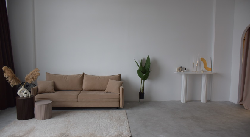Понравилось наличие бесплатной (!!!) гримерки, в которой есть рейлы для одежды, отпариватель и в целом все то, что обычно приходилось тащить с собой Студия уютная, в зале «бетон» много различных вариантов фонов