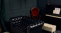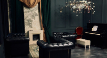 Особенно хорошо в таком интерьере работают светлые образы, шелк, бархат, костюмы и вечерние платья — на темном фоне они раскрываются особенно эффектно.