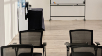Пространство оборудовано удобными стульями, современным экраном и флипчартом, а также зоной для кофе-брейков с кулером и столом для угощений. Благодаря нейтральной цветовой палитре и функциональной планировке, зал легко адаптируется под любое мероприятие — от деловых встреч до творческих вечеров.