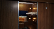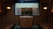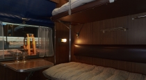 Здесь ВСЁ по-настоящему! От удобных полок и столика до самых что ни на есть советских подстаканников, матрасы в полосочку и уютные занавески.