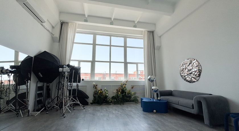 Зал URA - универсальное пространство, для воплощения ваших идей. Угловая циклорама 4x3,5, интерьерная зона с дизайнерским диваном и металлическими акцентами. В зале нет доплат за оборудование. В вашем распоряжении профессиональные импульсные и постоянные источники света, оптическая насадка с масками Гобо, дым машина, гибкое зеркало. Площадь зала 55 кв. м., на всю стену располагается большое окно, благодаря чему в помещении много света, а в солнечные дни с 14:00-18:00 в зал попадают лучи, которые добавляют особую атмосферу. Также, у нас есть просторная гримерная зона и сан. узел.