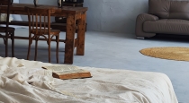 Зона с белой кирпичной стеной, матрас с белоснежным постельным бельем.