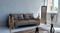 - Большой кожаный диван цвета капучино