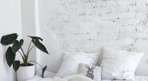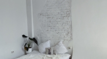 Зона с белой кирпичной стеной, матрас с белоснежным постельным бельем.