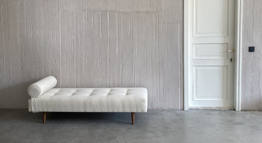 - Есть две серая фактурная стена, красные бархатные шторы, ретро-мебель и реквизит