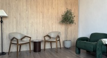 Деревянная стена цвета горького шоколада имитирует интерьер элитных отелей и ресторанов! Зал создан для дорогого и продающего контента.