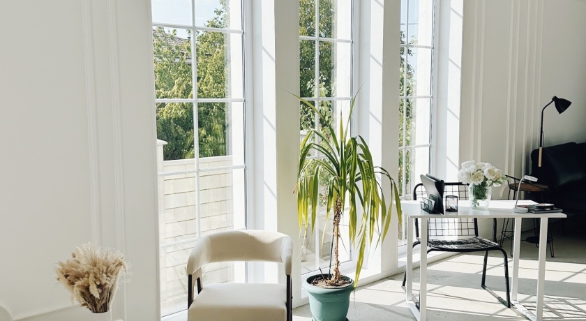 Дневной свет и большие окна в пол