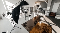 Была в зале монохром. Циклорама чистая, оборудование отличное. Всё есть для реализации идей.