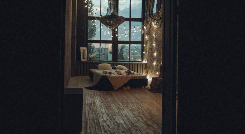 Заказ на 8 января, 2026, зал Зал #4 Т-room (чёрный зал и светлый с кроватью и парящими тканями)