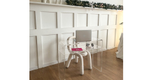 -Cozy office zone: прозрачный столик с ноутбуком, наушники
