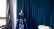 -2 бархатные шторы синяя и бежевая ( шторы можно двигать)