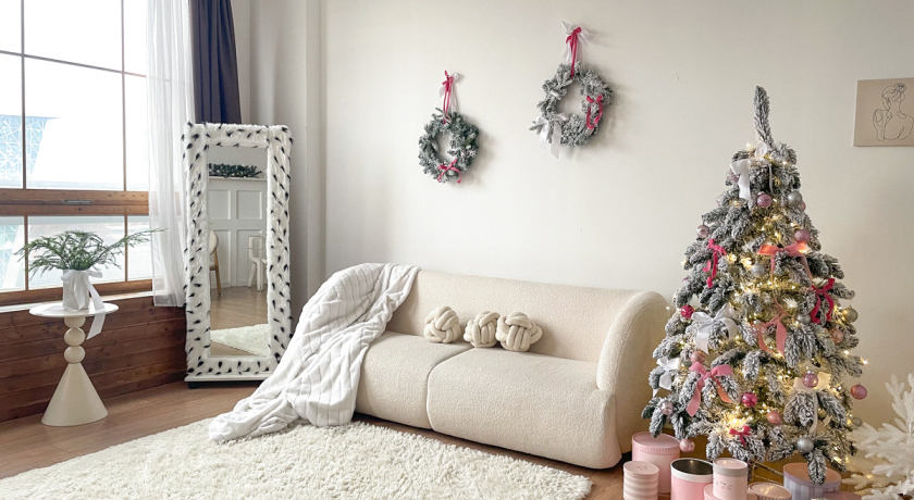 В зале установлен новогодний декор! Декор можно двигать, важно к концу аренды, вернуть все на места.