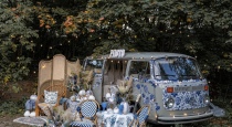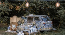 заброшенная машина, мотоцикл, остановка, ретро предметы, сцена театр