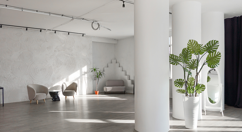 Оснащение: шторы 100% блэкаут; 1 гримерный стол; 2 флага; 2 белых куба, рейл для одежды, зеркало в полный рост, стол для фотографа.