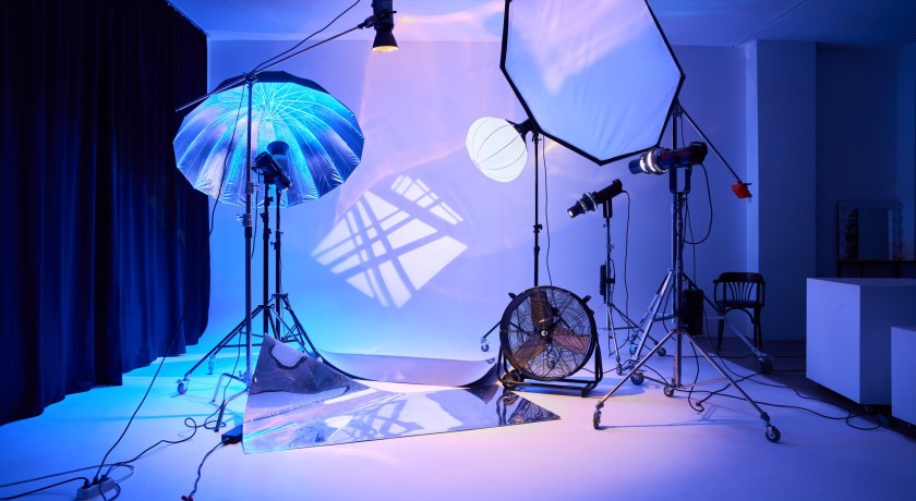 Оснащение: 3 импульсных моноблока Profoto; журавль с рычагом для регулирования высоты, 2 куба белых, 1 видео свет Godox-100; 2 флага, гримерный стол, шторый блэкаут 95%, ростовое зеркало, рейл, пуф, стулья, столы, растение, штатив для телефона с кнопкой.