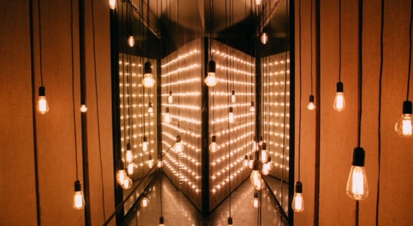 -Зеркальный коридор с лампами Эдисона