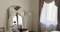 Антикварная мебель, Балкон, Вешалка для одежды, Журнальный столик, Зеркало, Картины, Комод, Кресло, Люстра, Окно, Портьеры, Пуф, Свечи, Телефон, Туалетный столик, Тумба, Шторы