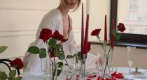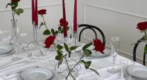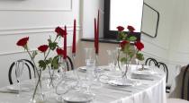 Камин, клавишные, мраморный стол, вазы, сервировка стола