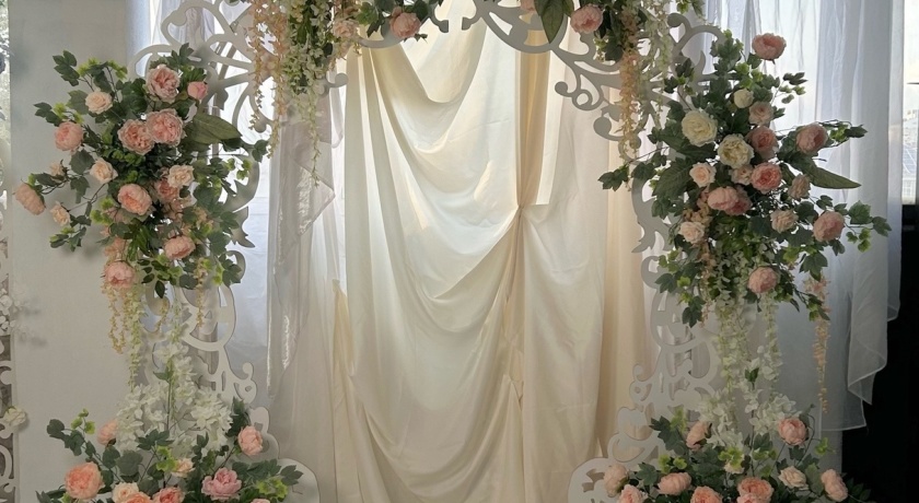 - если нужна свадебная фотозона, цветы. По их наличию нужно уточнять т.к. мы сдаем в прокат все свадебные композиции.