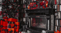 Готический камин и пианино в свечах