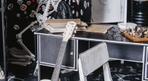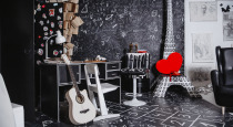 Монохромная фотозона с художественными рисунками