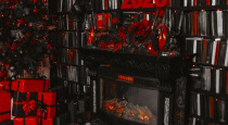 Уютная атмосфера с потрескиванием камина и живыми свечами