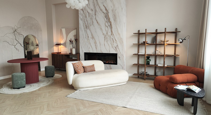 Диван, Зеркало, Камин, Кресло, Люстра, Пуф, Стул