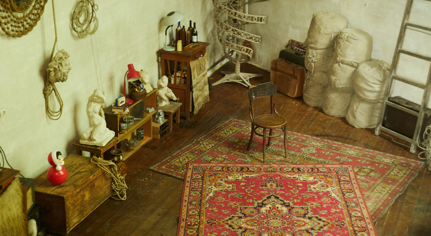 Скульптурная мастерская, построенная в 1974 году. С тех пор в ней ничего не изменилось, мастерская наполнена предметами искусства (скульптуры, гобелены, картины) и предметами советской эпохи. Состоит из большого пространства 60м2 с потолком 5,5 метров и окном 3х4,8м и антресоли площадью 20м2. Также в мастерской есть свой закрытый двор общей площадью 80м2.